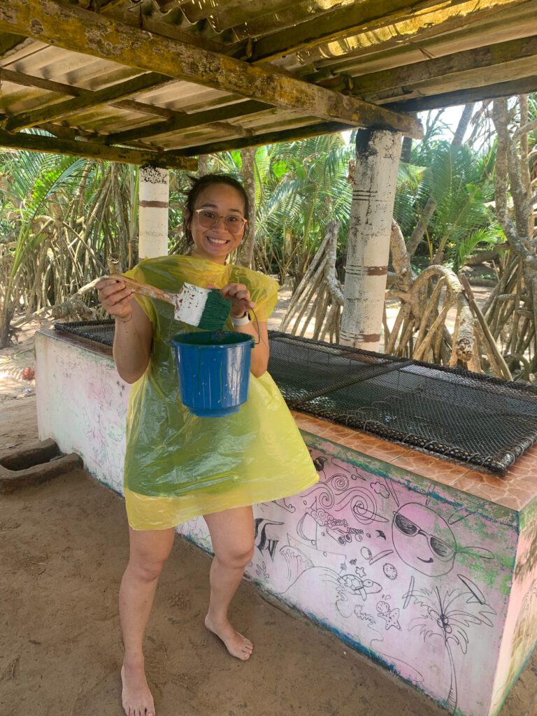 In der dritten Woche haben wir alle Becken gründlich gereinigt und wenn wir sagen „gründlich“, meinen wir wirklich gründlich. Wasser komplett ablassen, Algen schrubben und versuchen, möglichst viele der kleinen Fische zu retten. Leider schwimmen sie panisch vor uns davon. Das Ganze endet dann in einem fröhlichen, aber leicht frustrierenden Fangspiel: Wir hinterher, die Fische voraus. Jeder gefangene Fisch wird gefeiert wie ein Lottogewinn, aber leider haben sich ein paar von ihnen lieber für den Abfluss entschieden oder wir sind aus Versehen zu kraftvoll. Am Mittwoch haben wir dann (vor lauter Angst, dass alle im Eimersterben) alle geretteten Fische in die falschen Becken gesetzt. Tja, das bedeutete: Am Donnerstag das ganze Spiel nochmal von vorne mit Wasser ablassen, Fische jagen, fluchen, lachen.