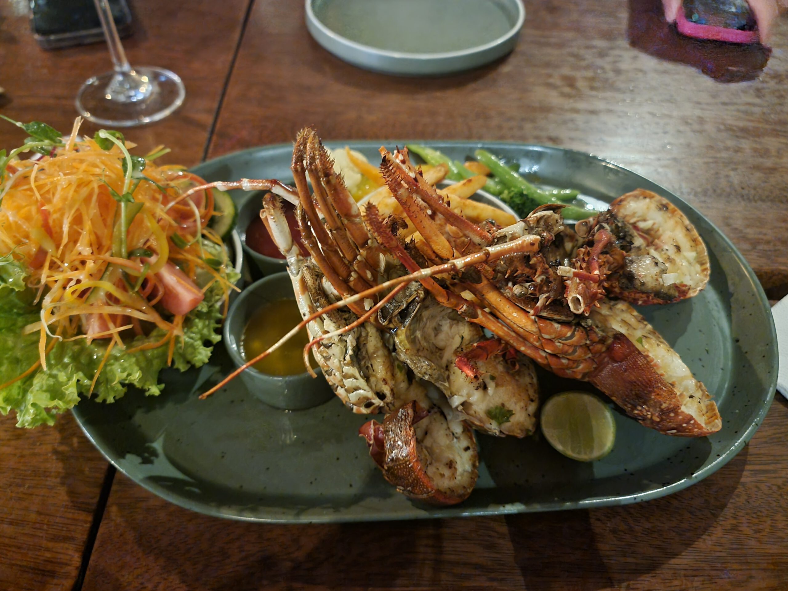 Am Samstag ging’s dann weiter nach Ella, mitten in die Berge und das hat man sofort gespürt. In Hiriketiya war es noch brüllend heiß, und plötzlich war uns in Ella einfach kalt, weil es kurz vorher geregnet hatte. Für die Ankunft hatte ich mir am Abend mit Vlad die Portion Lobster gegönnt 🦞😋 hihi