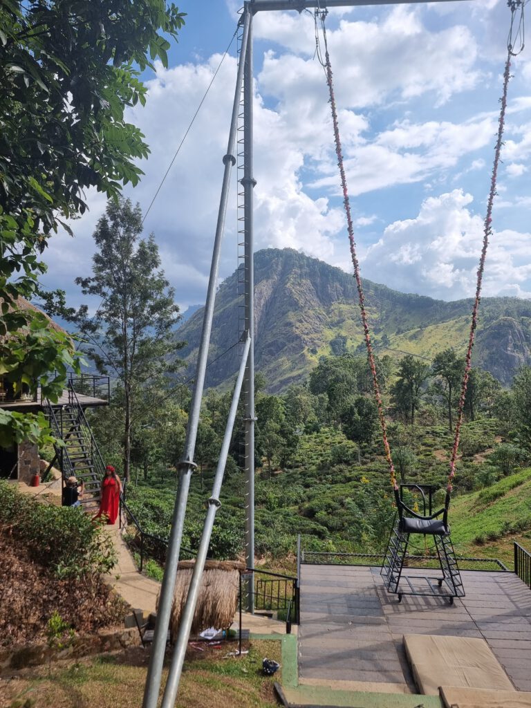 Danach sind wir hoch zum Little Adam’s Peak gewandert. Den großen Adam’s Peak haben uns viele Einheimischen für die Nebensaison wirklich abgeraten und auf die sollte man definitiv hören. Rund um den kleinen Adam’s Peak wurde aber ordentlich investiert: unten gibt’s eine moderne Anlage mit Pool, Musik, Bar und allem Schnickschnack, mit Blick auf die Berge. Weiter oben kam dann eine Zipline, eine große Schaukel (inkl. Verleih von langen Kleidern und Blumenkränzen für das perfekte Insta-Foto), und eine Kletterwand also eher eine Mischung aus Natur und Funpark. Ich war schon etwas skeptisch.